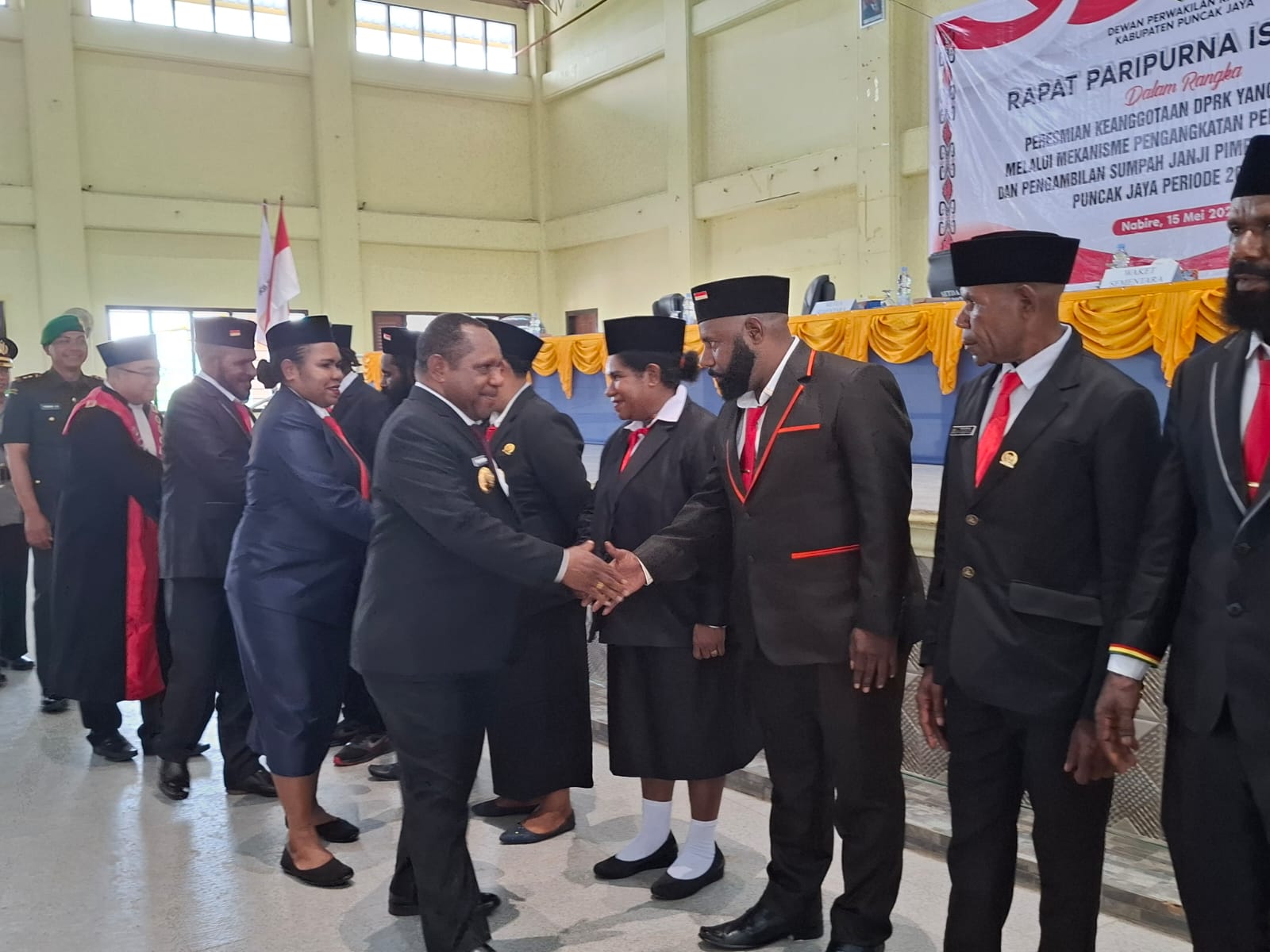 Peresmian keanggotaan DPRK yang ditetapkan melalui mekanisme pengangkatan periode 2024-2029 ini, ditandai dengan pengambilan sumpah janji oleh Ketua Pengadilan Negeri Nabire, Bekti Wibowo dalam rapat paripurna istimewa yang dipimpin Ketua Sementara DPRK Puncak Jaya, Detimin Tabuni.