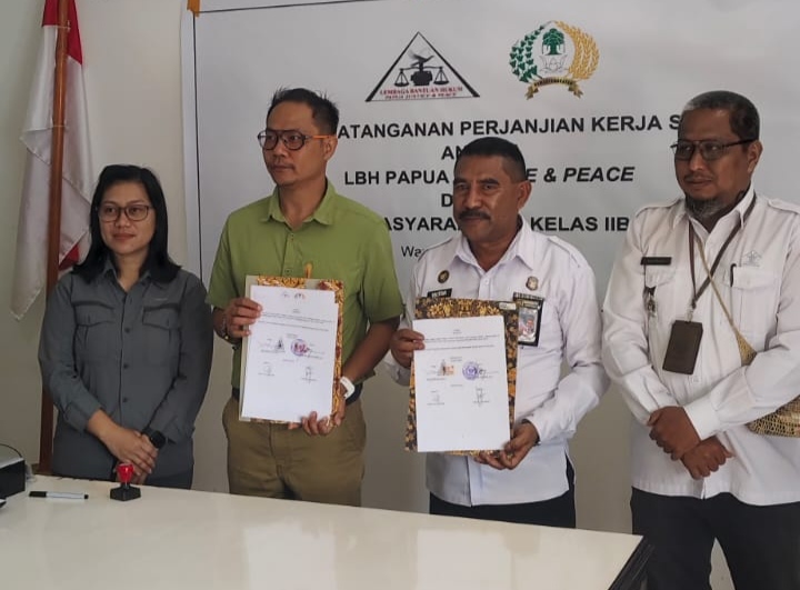 Penandatangan kerjasama ini dilakukan oleh Kepala Lapas Kelas IIB Wamena, Yoin Victor Aponno, SH dan Ketua LBH Papua Justice & Peace, Yulianto, SH, MH di Jayapura, Rabu, 25 Juni 2025.