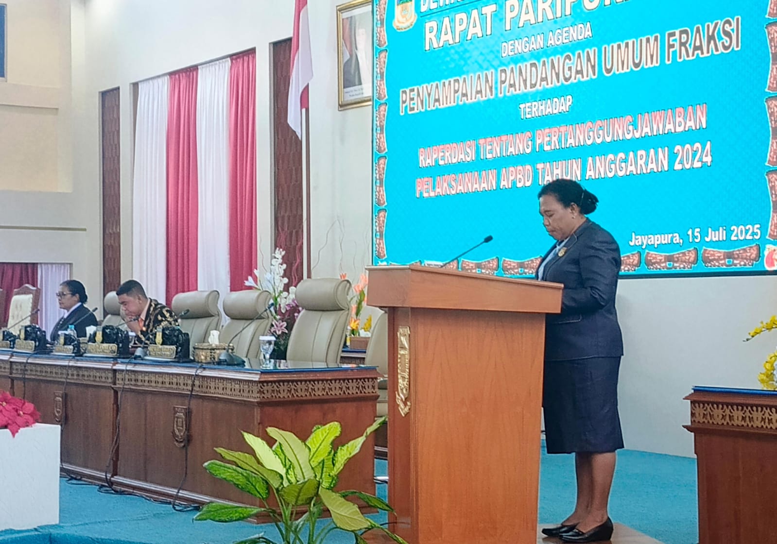 “Ini artinya masih sangat besar ketergantungan Pemerintah Provinsi Papua terhadap Pendapatan Transfer Pemerintah Pusat untuk mendukung terlaksananya penyelenggaran pemerintahan, pembangunan daerah dan pelayanan masyarakat,” kata Dina Laura Rumbiak, SH, MM, Pelapor Fraksi Partai Golkar dalam rapat paripurna dengan agenda membahas Raperdasi tentang Pertanggungjawaban Pelaksanaan APBD Tahun Anggaran 2024, Selasa, 15 Juli 2025.