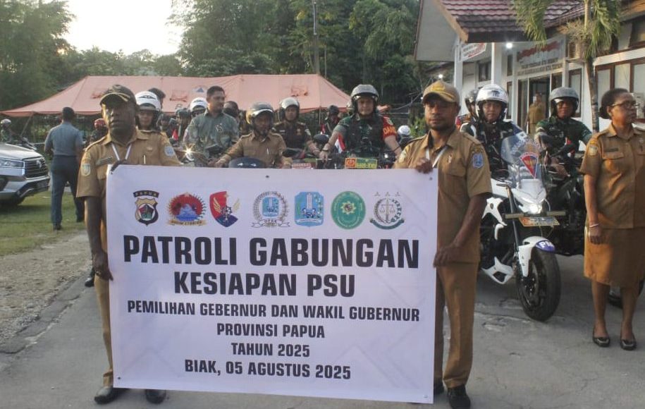 BIAK, Papuaterkini.com – Wakil Bupati Biak Numfor Jimmy Carter Kapisa memimpin konvoi patroli kesiapan Pemilihan Suara Ulang (PSU) Gubernur dan Wakil Gubernur, di di Biak, Selasa, 5 Agustus 2025.