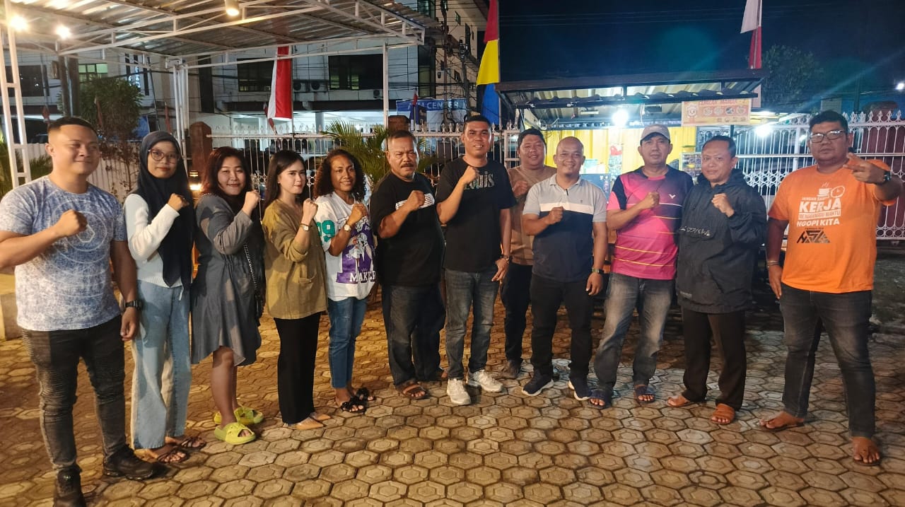 Ketua Pengprov PORDI Papua H Supriadi Laling bersama panitia Domino Open Turnamen foto bersama usai rapat di Kopi Djuang Abepura, Sabtu, 23 Agustus 2025 malam.