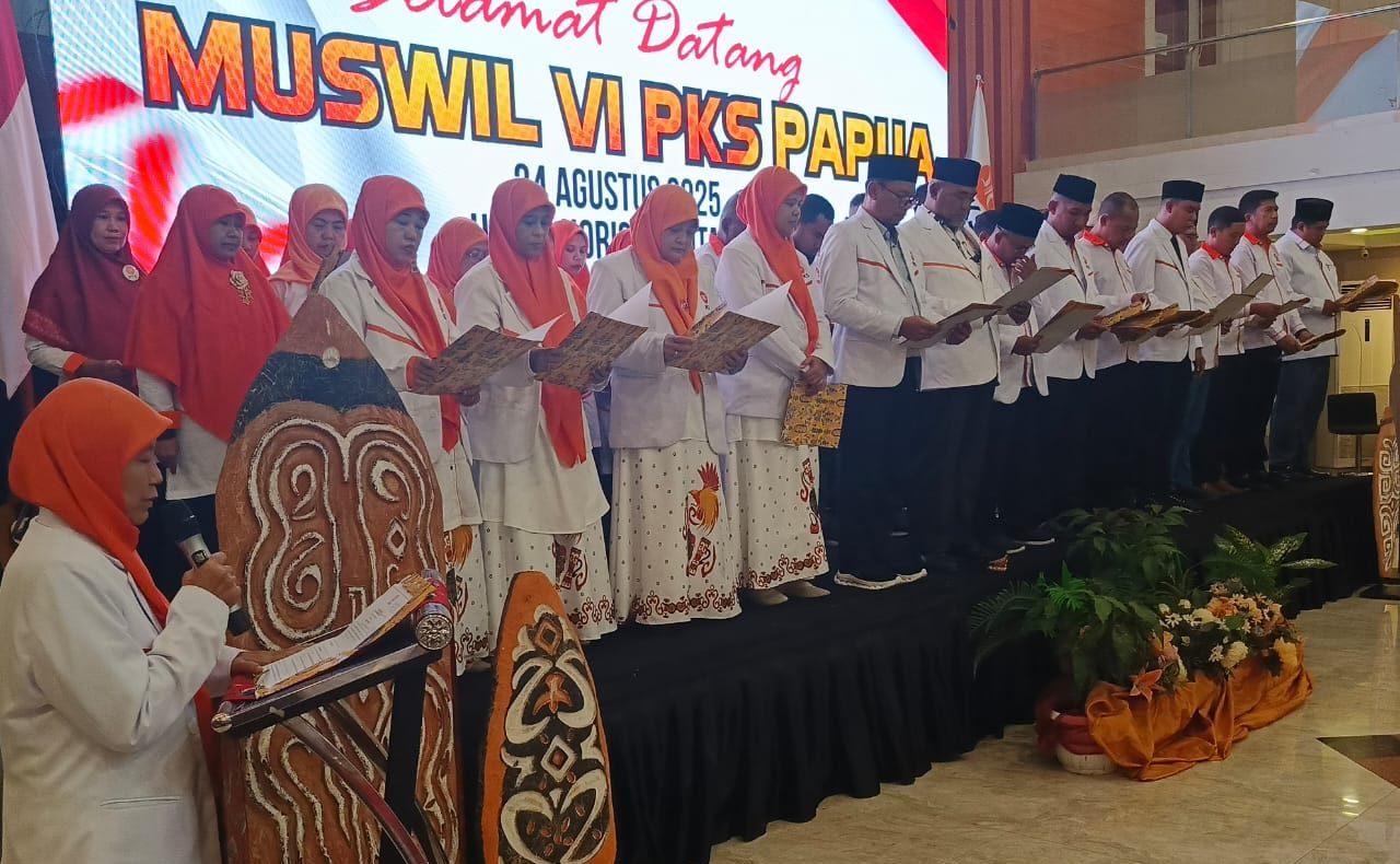 JAYAPURA, Papuaterkini.com – Struktur Kepengurusan Majelis Pertimbangan Wilayah (MPW), Dewan Syariah Wilayah dan Dewan Pimpinan Wilayah (DPW) Partai Keadilan Sejahtera (PKS) Provinsi Papua masa bhakti 2025 – 2030 resmi dilantik disela-sela Musyawarah Wilayah (Muswil) VI PKS Papua, Minggu, 24 Agustus 2025.