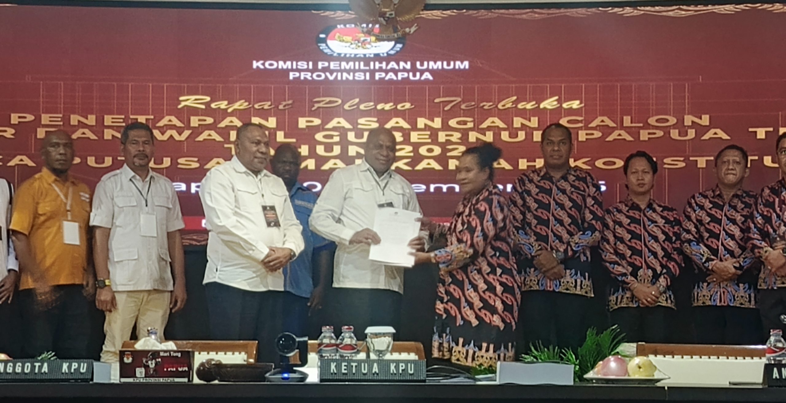 Penetapan tersebut dilakukan dalam Rapat Pleno Terbuka di Kantor KPU Papua, Sabtu, 20 September 2025, pasca-putusan Mahkamah Konstitusi (MK) terkait sengketa hasil Pemilihan Gubernur Papua 2024.