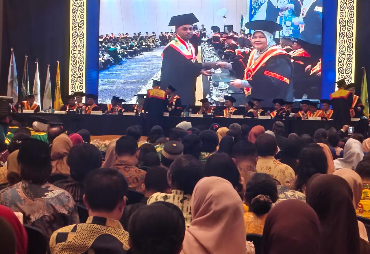 “Selamat kepada wisudawan yang berhasil menyelesaikan studi dan meraih gelar akademik. Semoga prestasi ini menjadi bekal untuk berkarya bagi bangsa dan tanah Papua,” ujar Rektor Didik Mabuai.