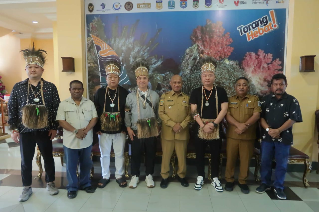 BIAK, Papuaterkini.com – Bupati Kabupaten Biak Numfor Markus O. Mansnembra bersama Kepala Dinas Perikanan dan Kepala Dinas Pariwisata menyambut kedatangan investor asal Tiongkok China dari PT Hai Ding Fa, di VIP Room Bandar Udara Internasional Frans Kaisepo Biak, Selasa, 7 Oktober 2025.
