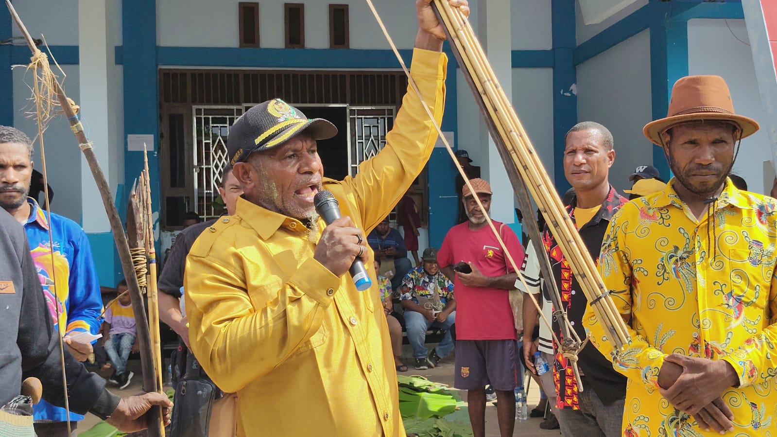 Pernyataan tersebut disampaikan Patinus Wanimbo di hadapan masyarakat saat kegiatan bakar batu, makan bersama, dan doa pemberkatan sebelum dirinya resmi memasuki ruang kerja Ketua DPRK Mamberamo Raya di Burmeso, Kamis (30/10/2025).