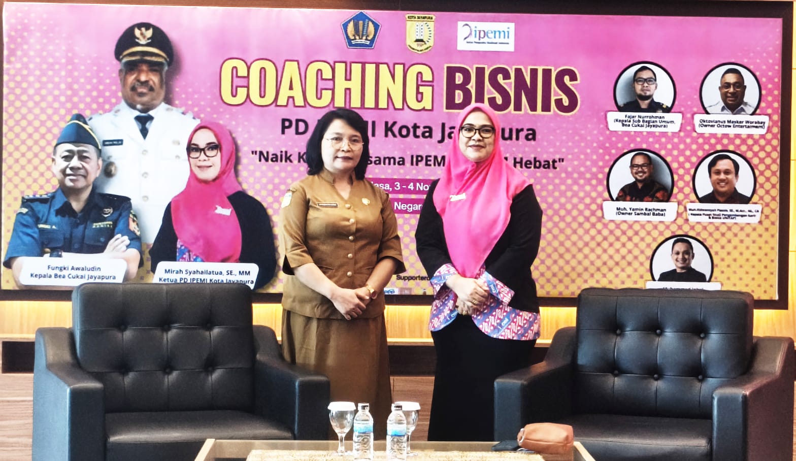 Caption: Ketua PD IPEMI Kota Jayapura, Murah Syahailatua, SE, MM foto bersama Asisten I Sekda Kota Jayapura Ni Nyoman Sri Antari dalam pembukaan Coaching Bisnis.