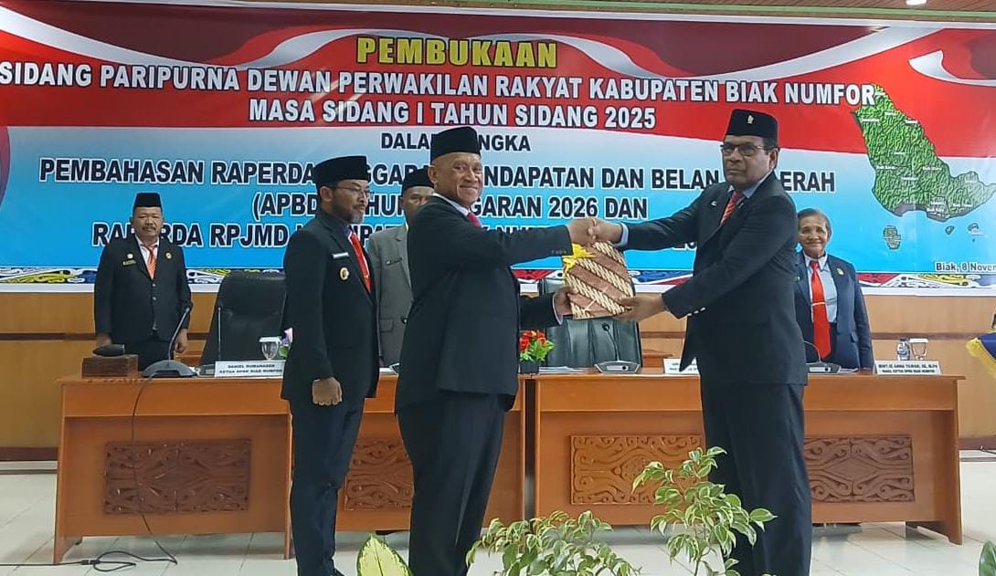 BIAK, Papuaterkini.com – Dewan Perwakilan Rakyat Kabupaten (DPRK) Biak Numfor resmi membuka Sidang Paripurna Pembahasan Rancangan Peraturan Daerah tentang Anggaran Pendapatan dan Belanja Daerah (RAPBD) Tahun Anggaran 2026 serta Rancangan Pembangunan Jangka Menengah Daerah (RPJMD) 2025–2029, Sabtu (8/11/2025).