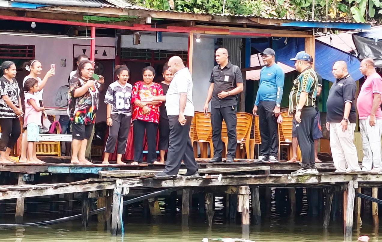 Gubernur Papua Matius D Fakhiri bersama Wagub Aryoko Rumaropen dan Ketua DPR Papua Denny Hendry Bonai mengunjungi warga pesisir Weref, Jayapura Selatan, Kota Jayapura, baru-baru ini.