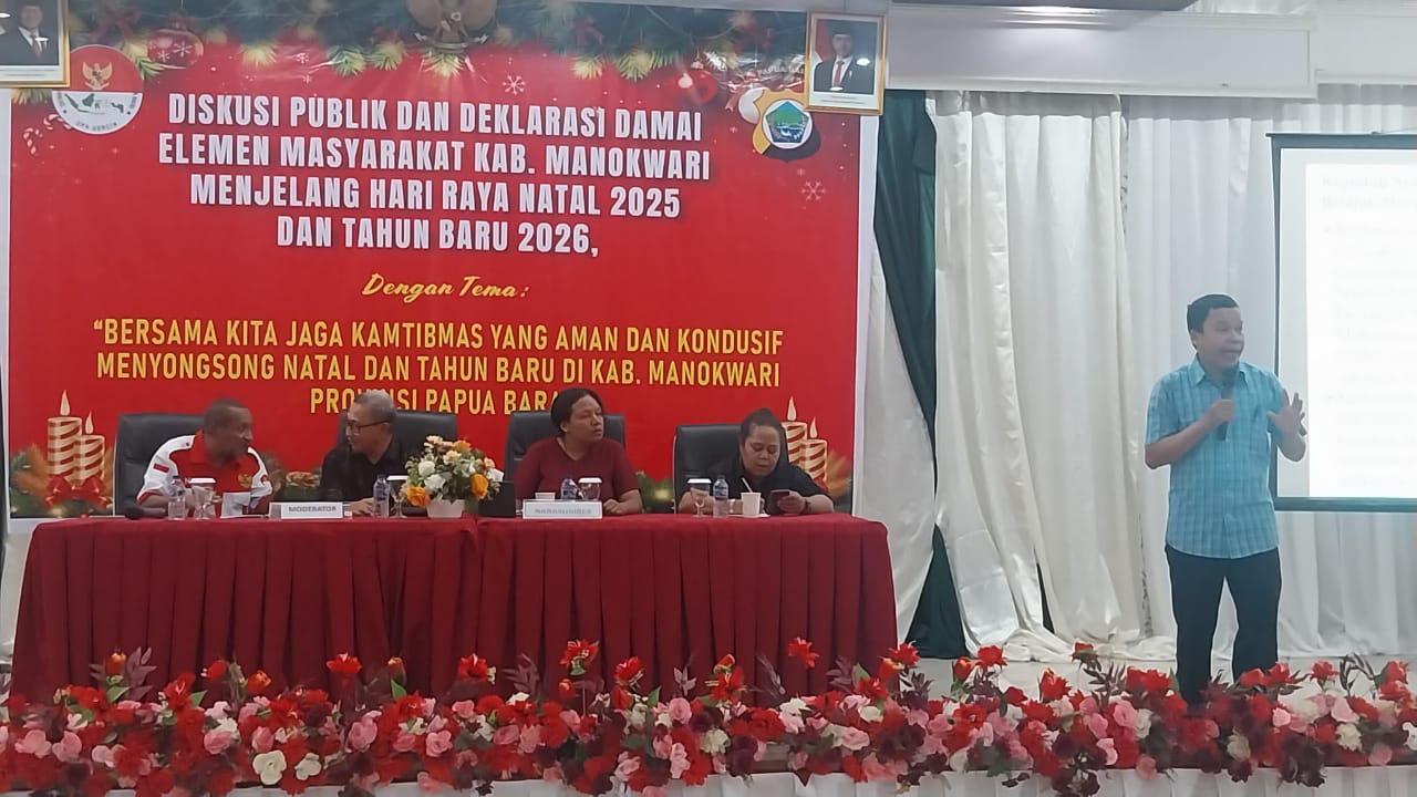 Suasana Diskusi Publik dan Deklarasi Damai menjelang Natal 2025 dan Tahun Baru 2026 yang digelar GERCIN Papua Barat di Manokwari.