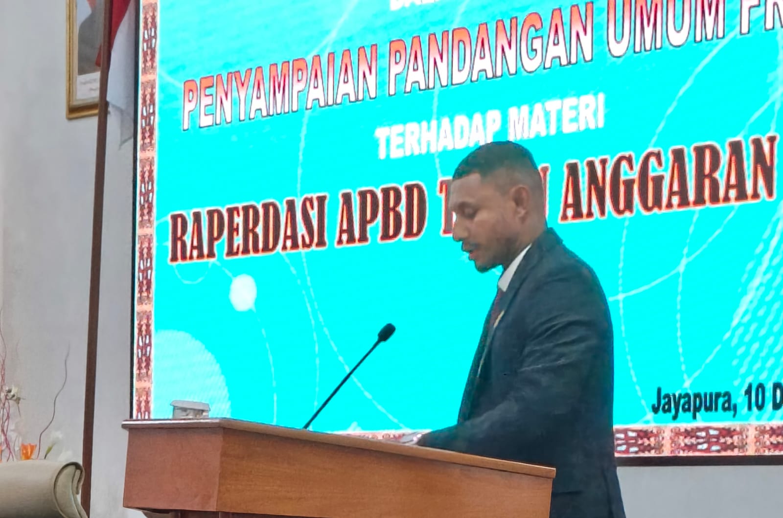 JAYAPURA, Papuaterkini.com – Fraksi Gerakan Amanat Persatuan (GAP) DPR Papua menyampaikan pandangan umum terhadap Raperdasi APBD Provinsi Papua Tahun Anggaran 2026 dalam rapat paripurna yang digelar Rabu, 10 Desember 2025.