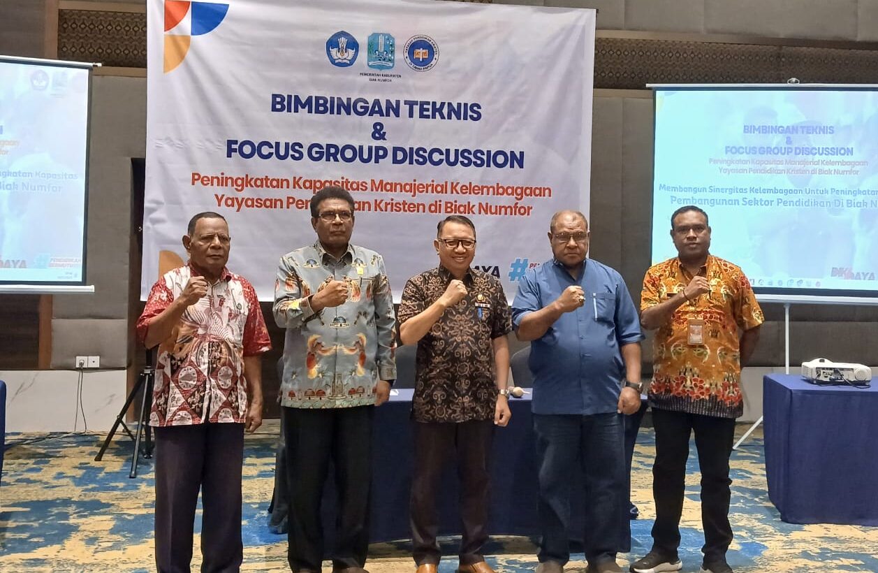 BIAK, Papuaterkini.com – Dinas Pendidikan dan Kebudayaan (Disdikbud) Kabupaten Biak Numfor menggelar Bimbingan Teknis (Bimtek) dan Focus Group Discussion (FGD) peningkatan kapasitas manajerial kelembagaan Yayasan Pendidikan Kristen (YPK) di Kabupaten Biak Numfor. Kegiatan tersebut berlangsung di Swiss-Belhotel Biak, Kamis (18/12/2025).