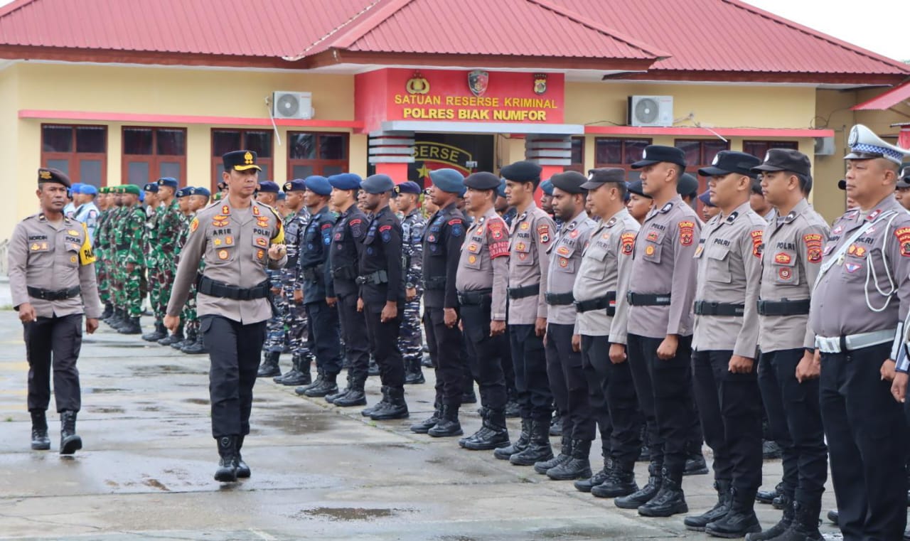 Apel tersebut dipimpin langsung oleh Kapolres Biak Numfor AKBP Ari Trestiawan, S.H., S.I.K., M.H., dan berlangsung di Lapangan Apel Bhayangkara Polres Biak Numfor, Jumat (19/12/2025).