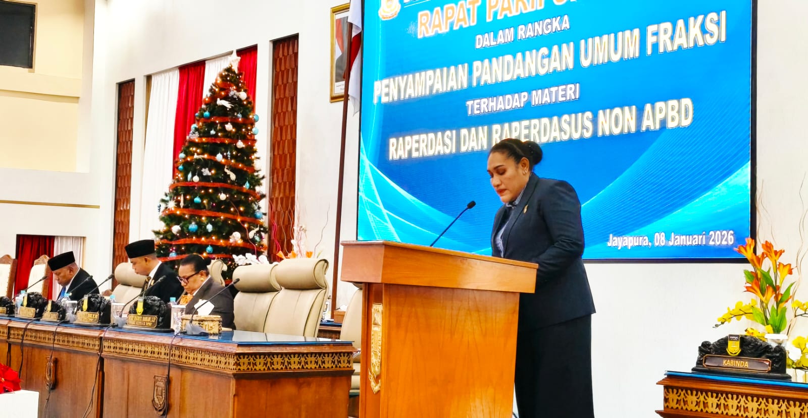 Pandangan umum fraksi tersebut disampaikan Pelapor Fraksi GAP DPR Papua, Dessy Corazon Giay, dalam rapat paripurna DPR Papua dengan agenda pembahasan Raperdasi dan Raperdasus Non APBD 2026, Kamis (8/1/2026).