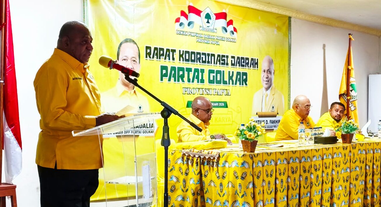 JAYAPURA, Papuaterkini.com – DPD I Partai Golkar Provinsi Papua menggelar Rapat Koordinasi Daerah (Rakorda) di Aula Kantor Partai Golkar Papua, Kota Jayapura, Kamis (29/1/2026). Rakorda ini menjadi momentum konsolidasi organisasi menyusul instruksi Dewan Pimpinan Pusat (DPP) Partai Golkar dan tindak lanjut hasil Rapat Pimpinan Nasional (Rapimnas).