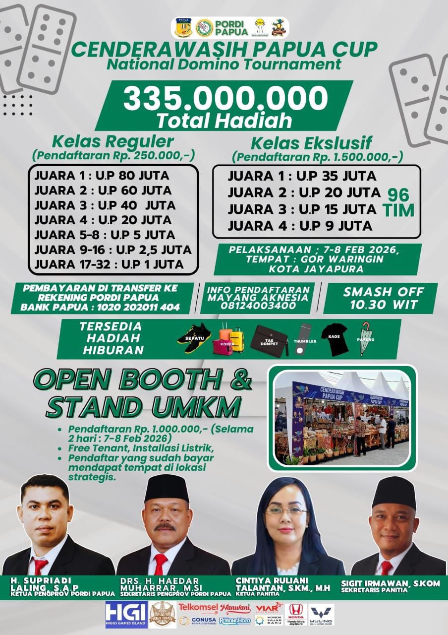“Peserta dari luar Papua sudah memastikan kehadiran dan siap bertanding. Ini bukti bahwa domino benar-benar mendapat tempat sebagai olahraga prestasi,” tegasnya.