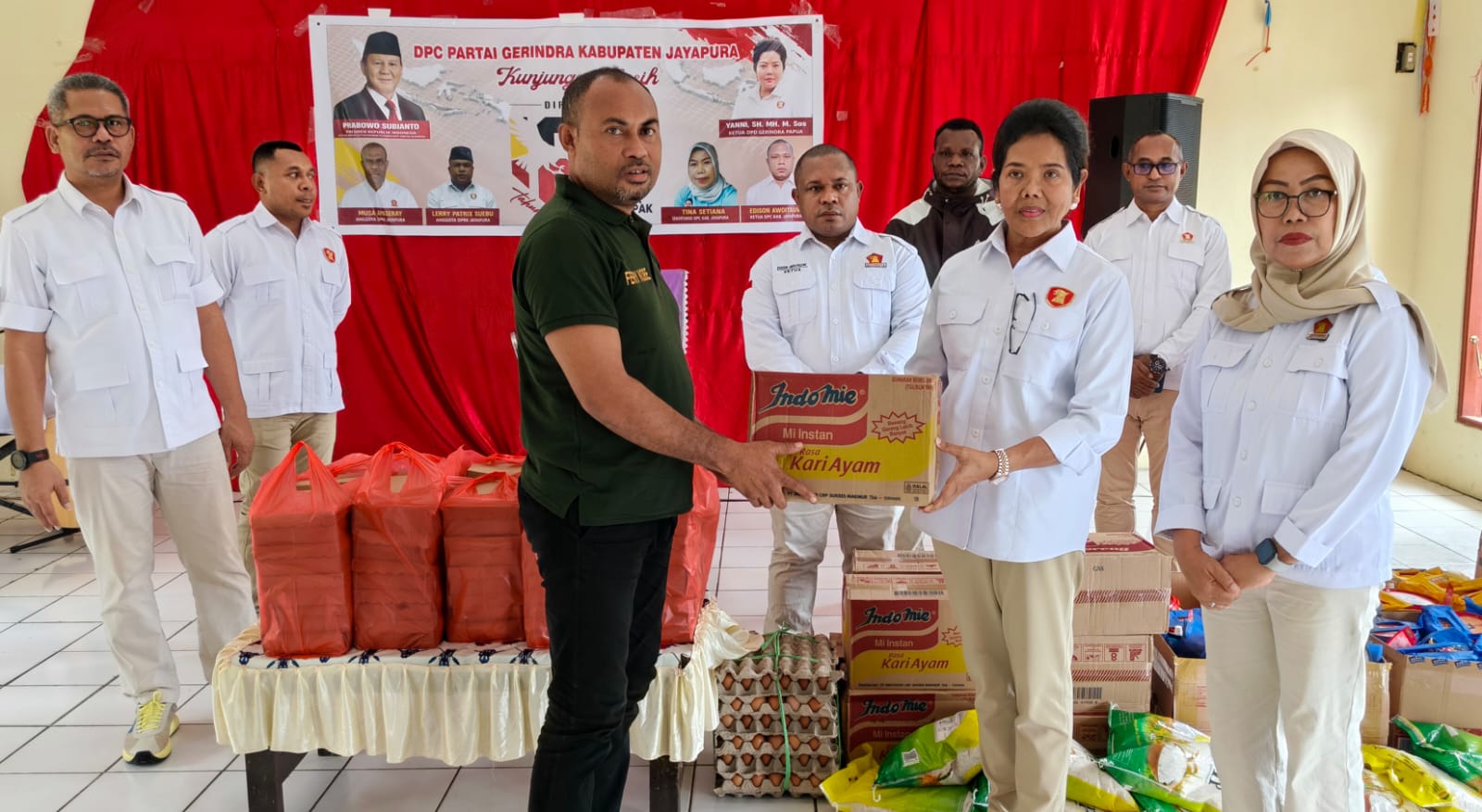Dalam kunjungan tersebut, DPD Partai Gerindra Papua menyerahkan bantuan berupa bingkisan serta bahan makanan (sembako) kepada 45 penghuni lansia Panti Sosial Tresna Werdha Sentani sebagai wujud kepedulian dan komitmen sosial partai.
