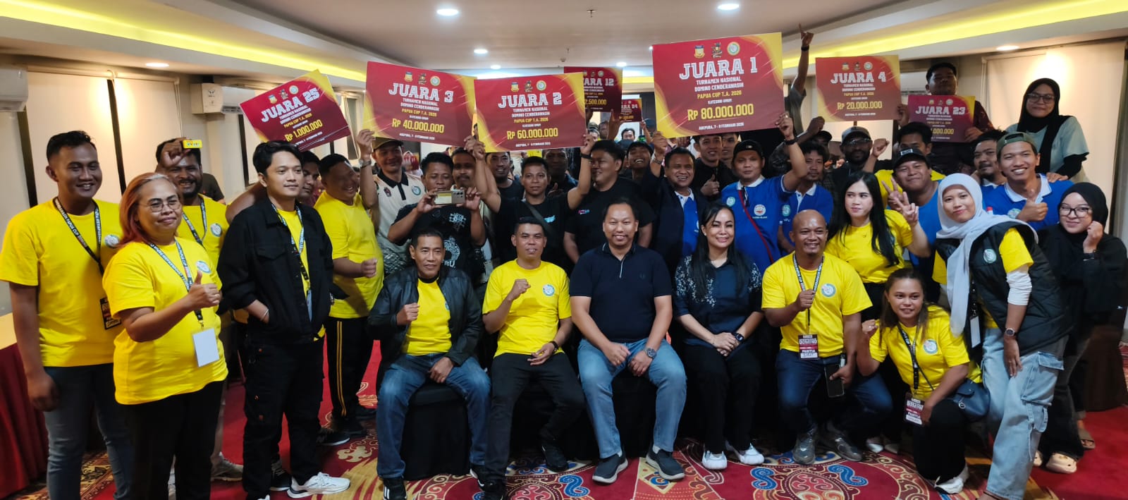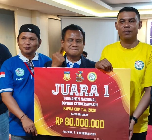 Sementara itu, Ketua Panitia Turnamen Nasional Domino Cenderawasih Papua Cup 2026, Cintiya Ruliani Talantan, SKM, MH, menyampaikan terima kasih dan apresiasi kepada semua pihak atas dukungan sehingga turnamen berjalan lancar dan menjunjung tinggi sportivitas.