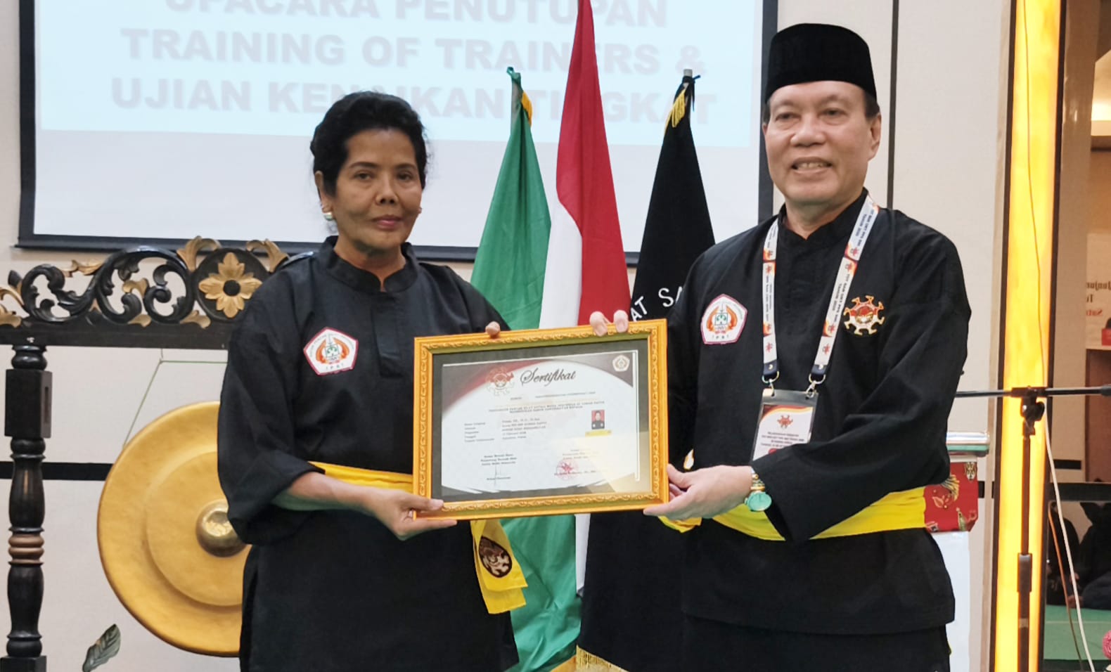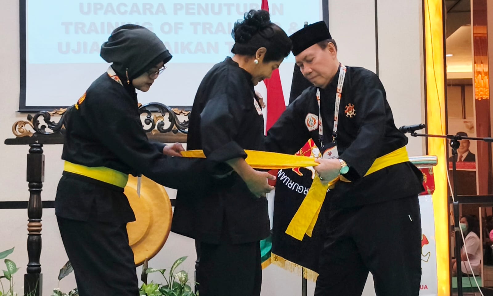 Penyerahan penganugerahan sabuk kehormatan Dewan Guru dilakukan langsung oleh Ketua Harian PP PPS SMI, Ir. Erizal Chaniago.