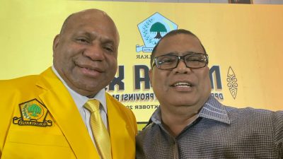 Chaption Foto: Ketua DPD Partai Golkar Papua, Matius D Fakhiri bersama Jubir Gubernur, M Rifai…