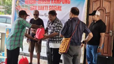 Chaption Foto: Penyerahan bantuan sembako dari Presiden Prabowo Subianto kepada masyarakat di Kampung Tobati Injros….